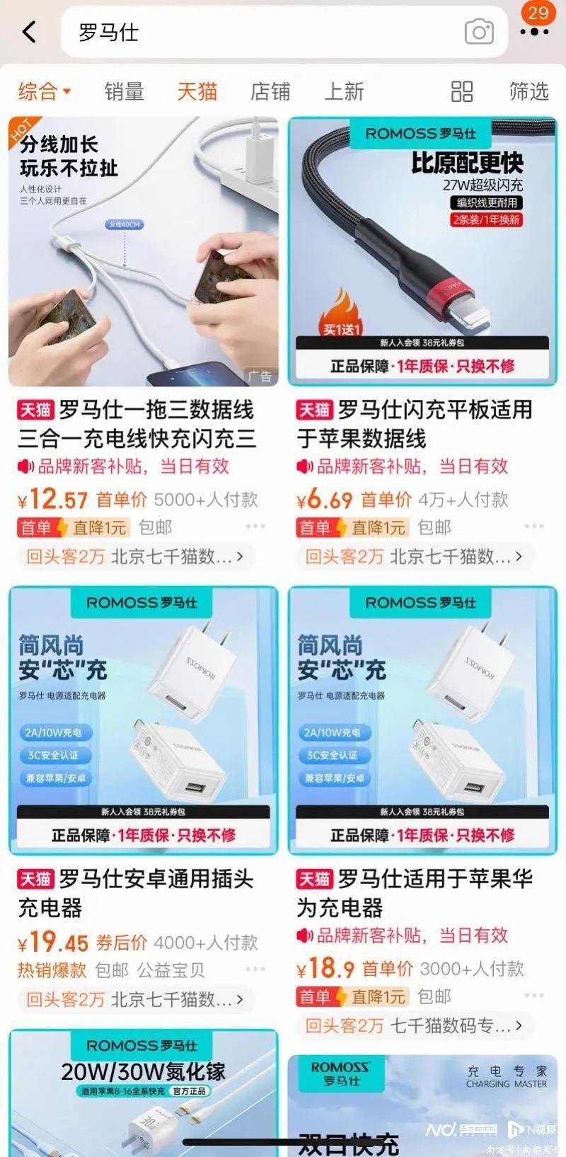 不过,天猫上的一些数码专营店以及天猫超市,还在销售罗马仕的产品,包括三合一充电线外,还有通用插头充电器以及氮化镓充电头。此外,罗马仕京东自营旗舰店仍正常运营,在售产品仅充电线、充电头。抖音罗马仕官方旗舰店仍未关闭,但店铺内无在售产品。