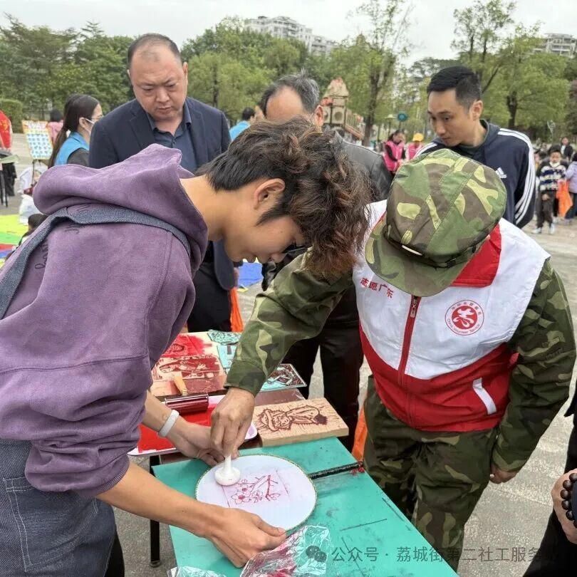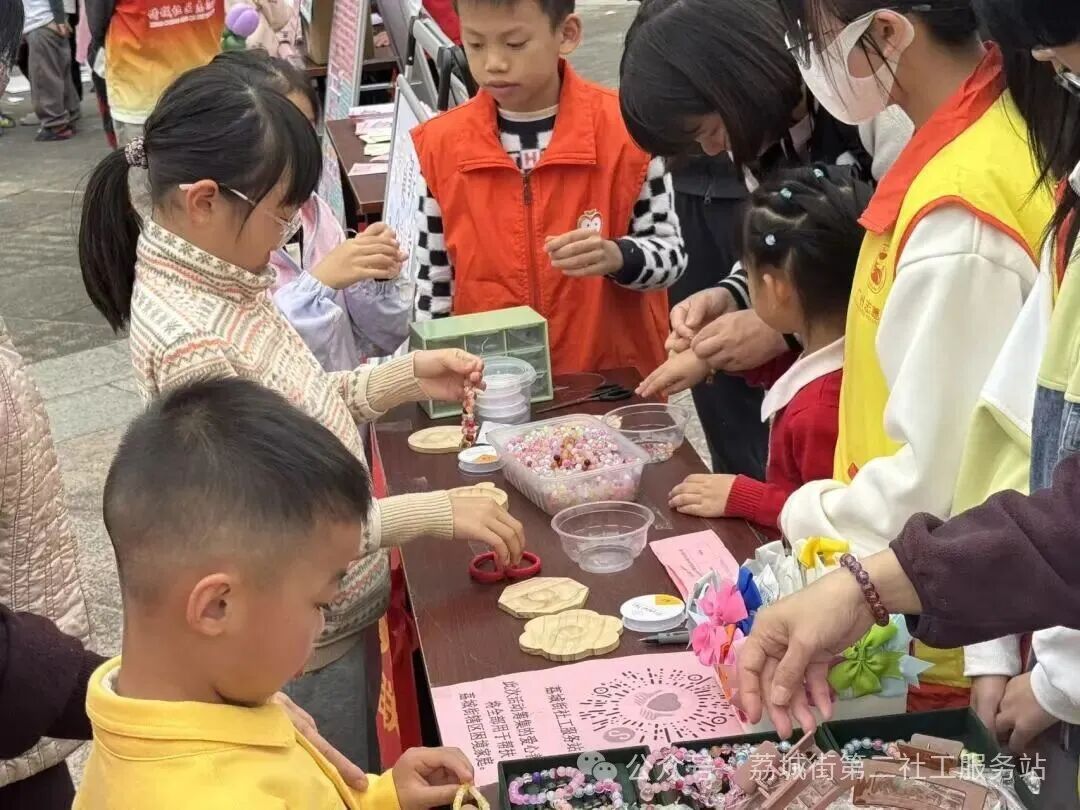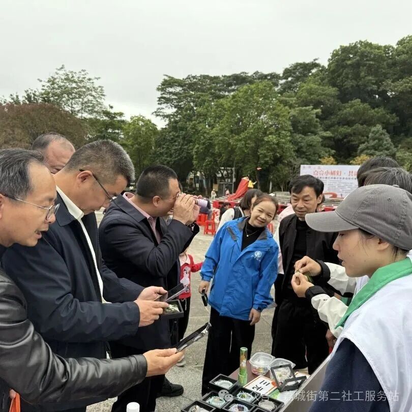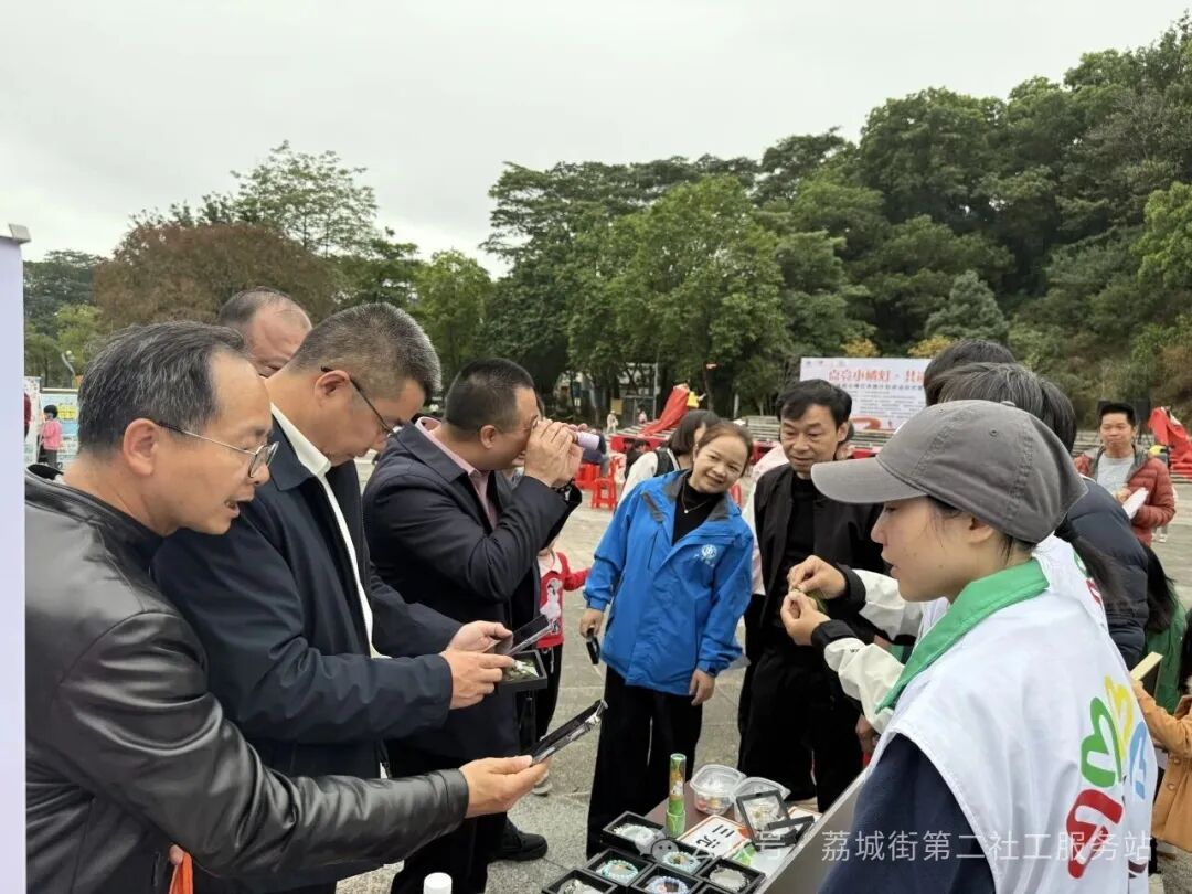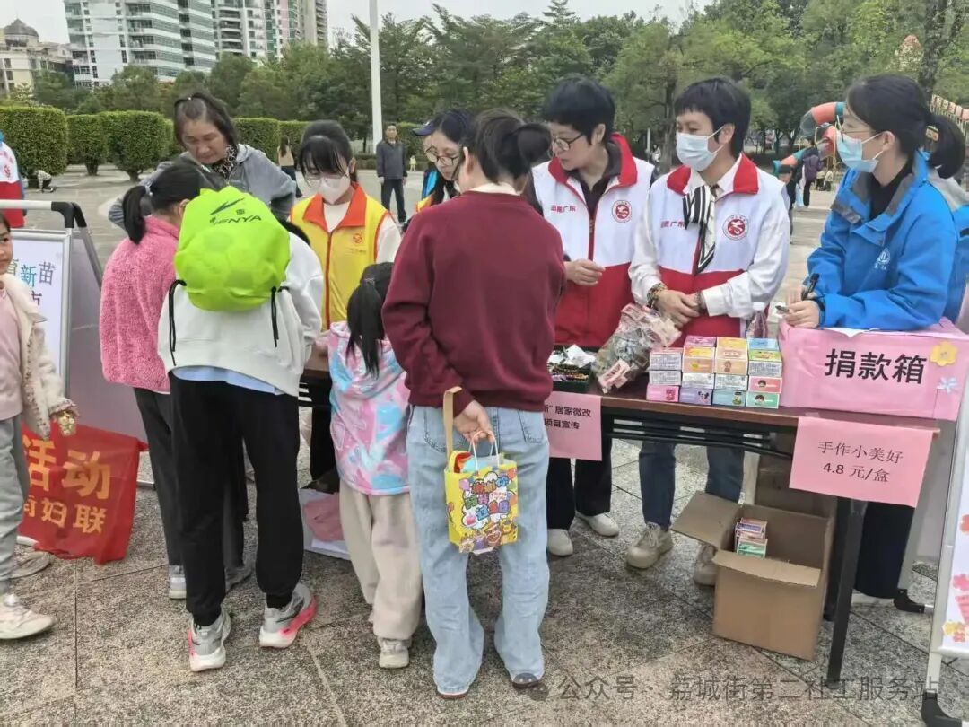 公益集市摊位区堪称本次活动的 “人气互动打卡点”,一亮相便吸引大批居民驻足参与、沉浸式体验。摊位围绕 “非遗传承 + 创意互动 + 公益助力” 三大核心精心打造,集市现场人气高涨,15个特色摊位涵盖非遗传承、创意互动与爱心助力三大板块。在非遗漆扇与剪纸体验区,居民近距离感受传统技艺的魅力;石膏娃娃DIY与串珠手工区里,家长与孩子携手创作,将创意与温情融入每一件作品;德伦口腔、星羽口腔、广安医院带来贴心义诊,东尼造型青年志愿服务队提供义剪服务;城乡院、汇翠湾幼儿园、希望树等单位开展义卖与互动,公益盲盒更是惊喜不断。现场所有义卖收入共480.8元,将全部用于“小橘灯共融计划”,让每一份参与都化作照亮困境儿童的温暖之光。