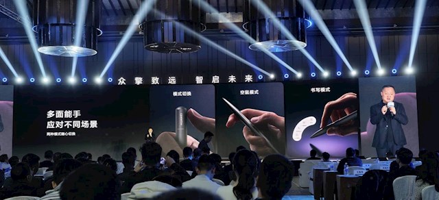 此外还有一大特色,擎云HM740还支持HUAWEI M-Pen 3多功能笔,不仅支持书写,还能一键切换为空鼠模式,方案演示非常方便。